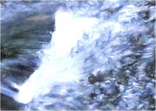 滝の水を見て頂くと、虹色の水玉でごさいます。